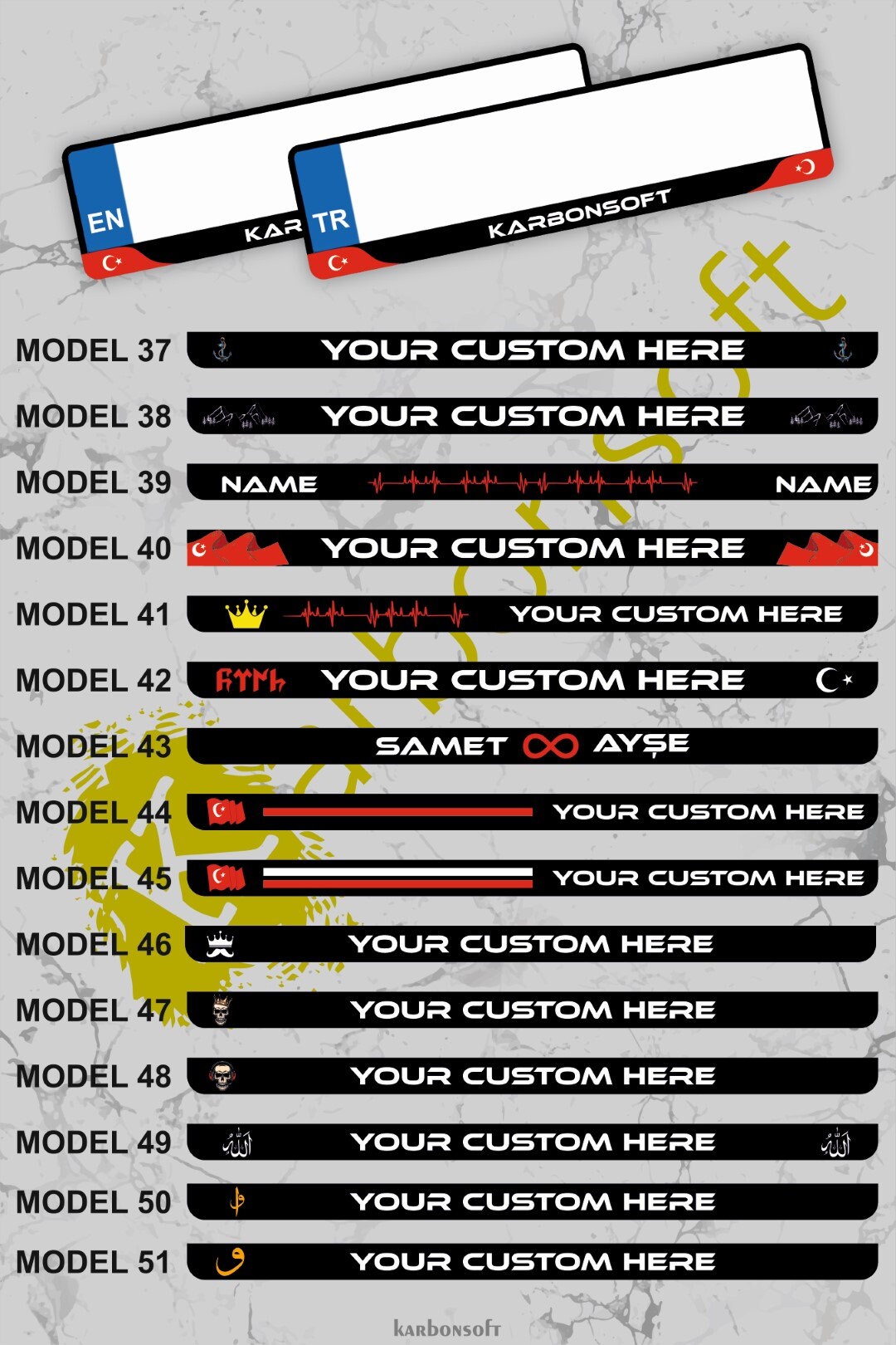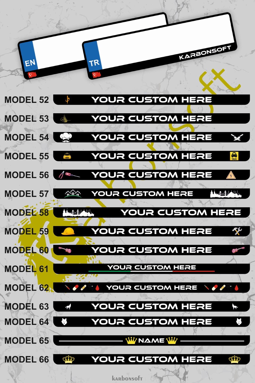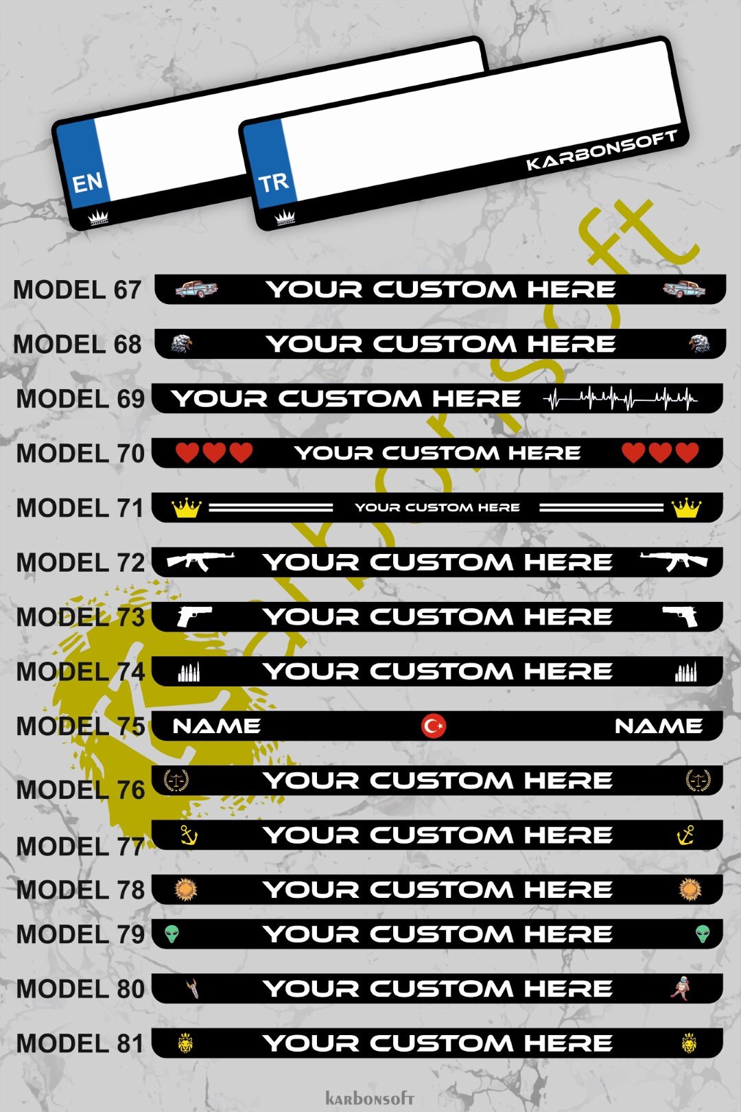 Hello, I have been producing custom-made products for vehicle license plates for many years. I design a wide variety of products that offer aesthetics and functionality for my customers. My product range includes car logo embossed black license plates, decorative car license plates, mirror decorations, body protectors, and much more. I can create many different designs and content according to my customers' requests.