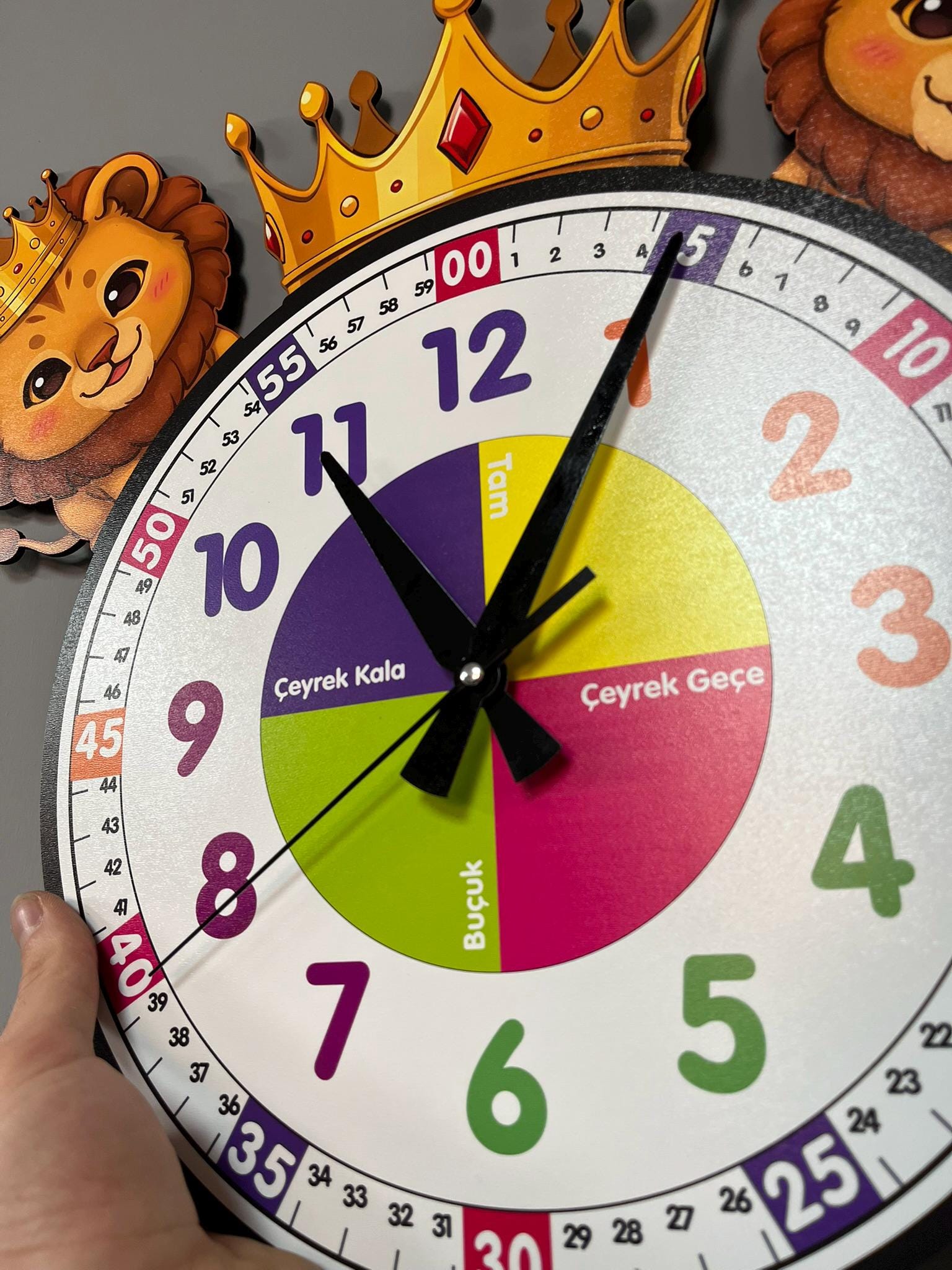 We are thrilled to present a special design that will accompany the most beautiful moments in our colorful world of time: Montessori children's watches! We have designed these watches to make learning time with a stylish and fun watch in your children's daily lives more enjoyable. Montessori children's watches are crafted with carefully selected high-quality materials. Our watches, designed with comfort and durability in mind, come in sizes that can easily be used in your children's daily activities. Additionally, we have designed Montessori watches to facilitate learning time. Large and understandable numbers help children read the hour and minute comfortably, while colorful hour and minute hands make learning the concepts of time fun. As parents, while you care about your children's development and education, understanding and keeping track of time will become a delightful experience with Montessori children's watches. You can choose these watches, which are both practical and fun, to add color to your child's daily life. We wish your children to have fun learning time with Montessori. We hope you use these watches, designed to make every moment unforgettable, with love. Product dimensions: 45 x 55 cm KARBONSOFT, bringing together wood and art, will now decorate your and your children's living space...