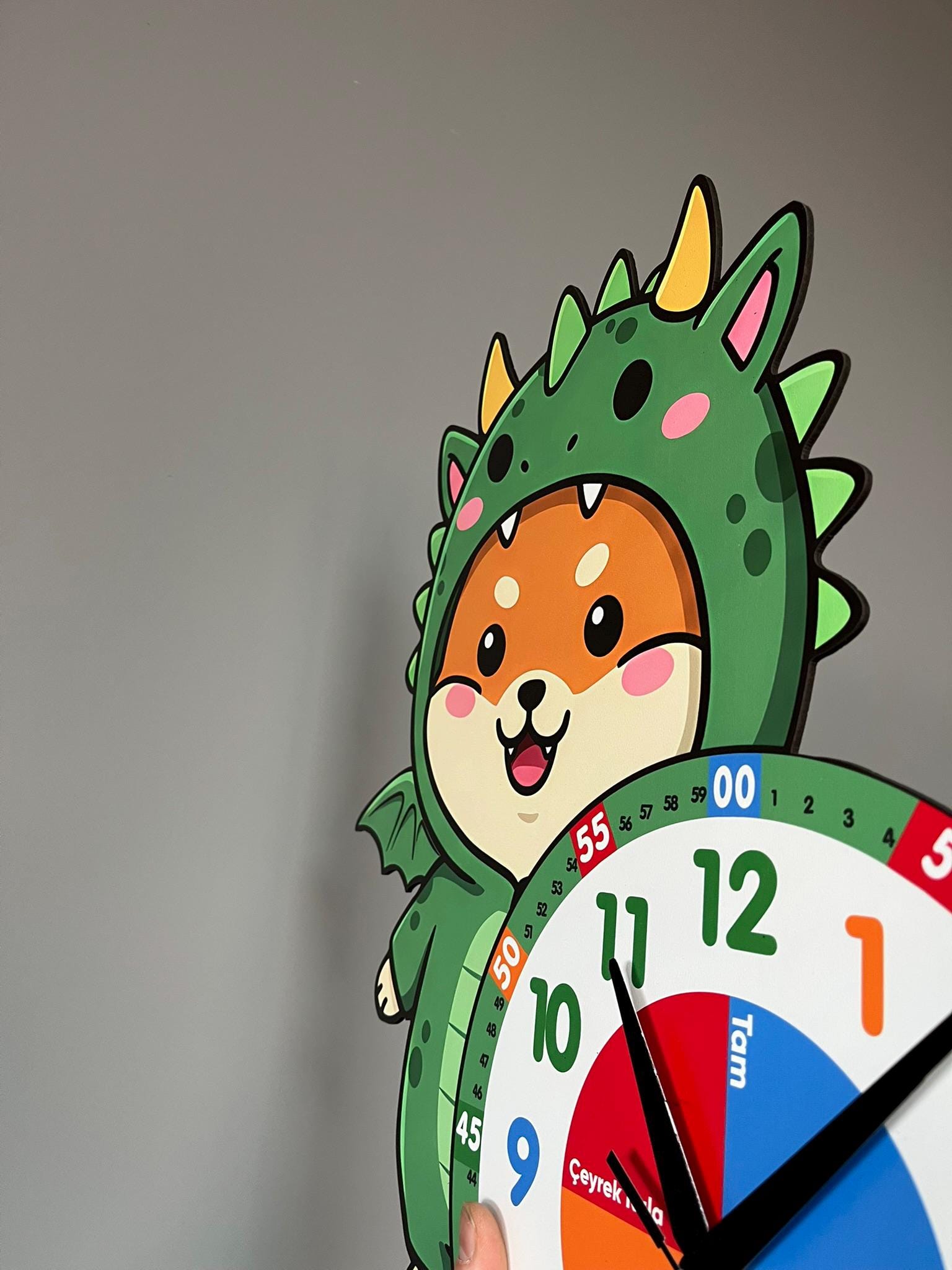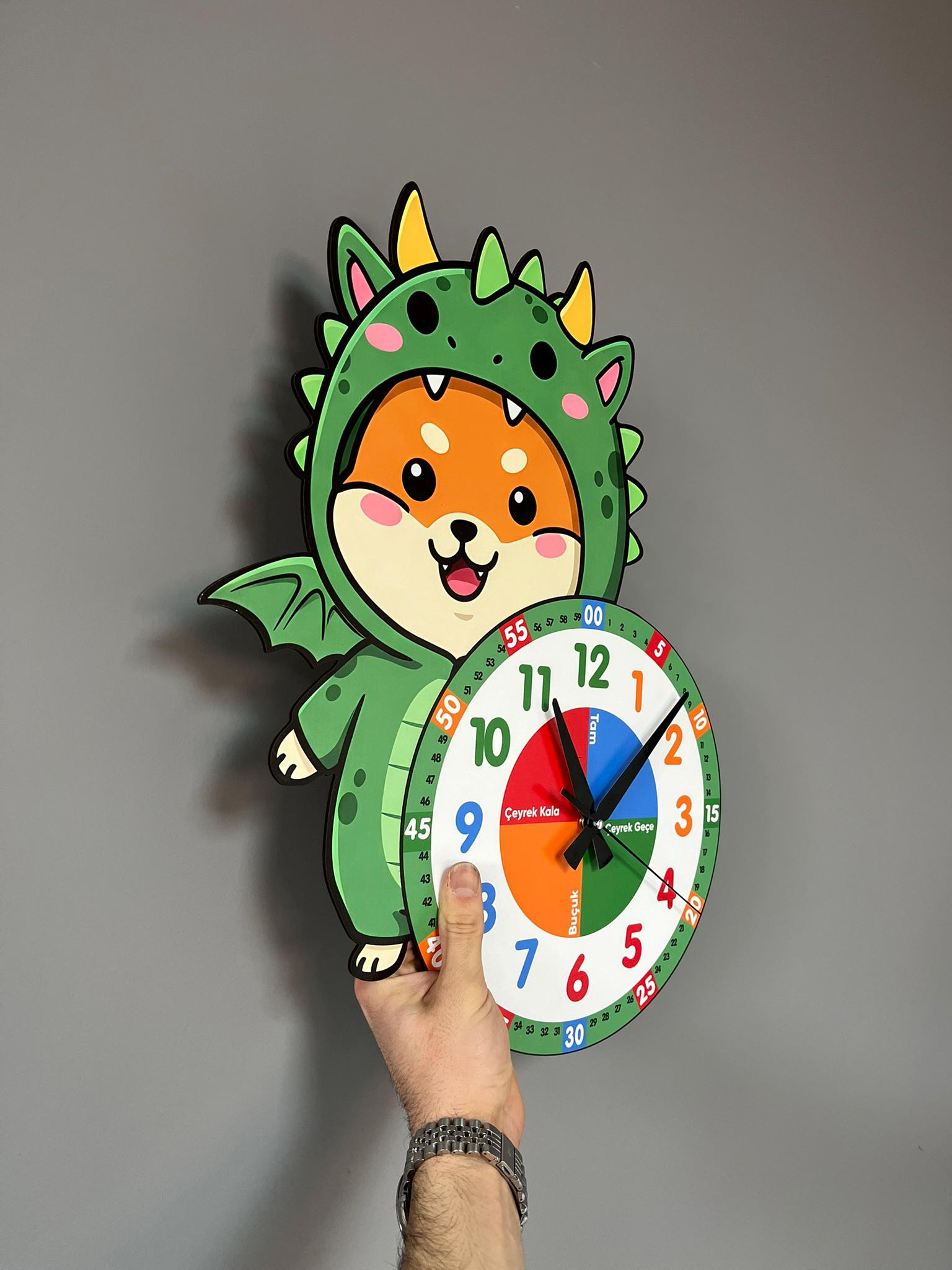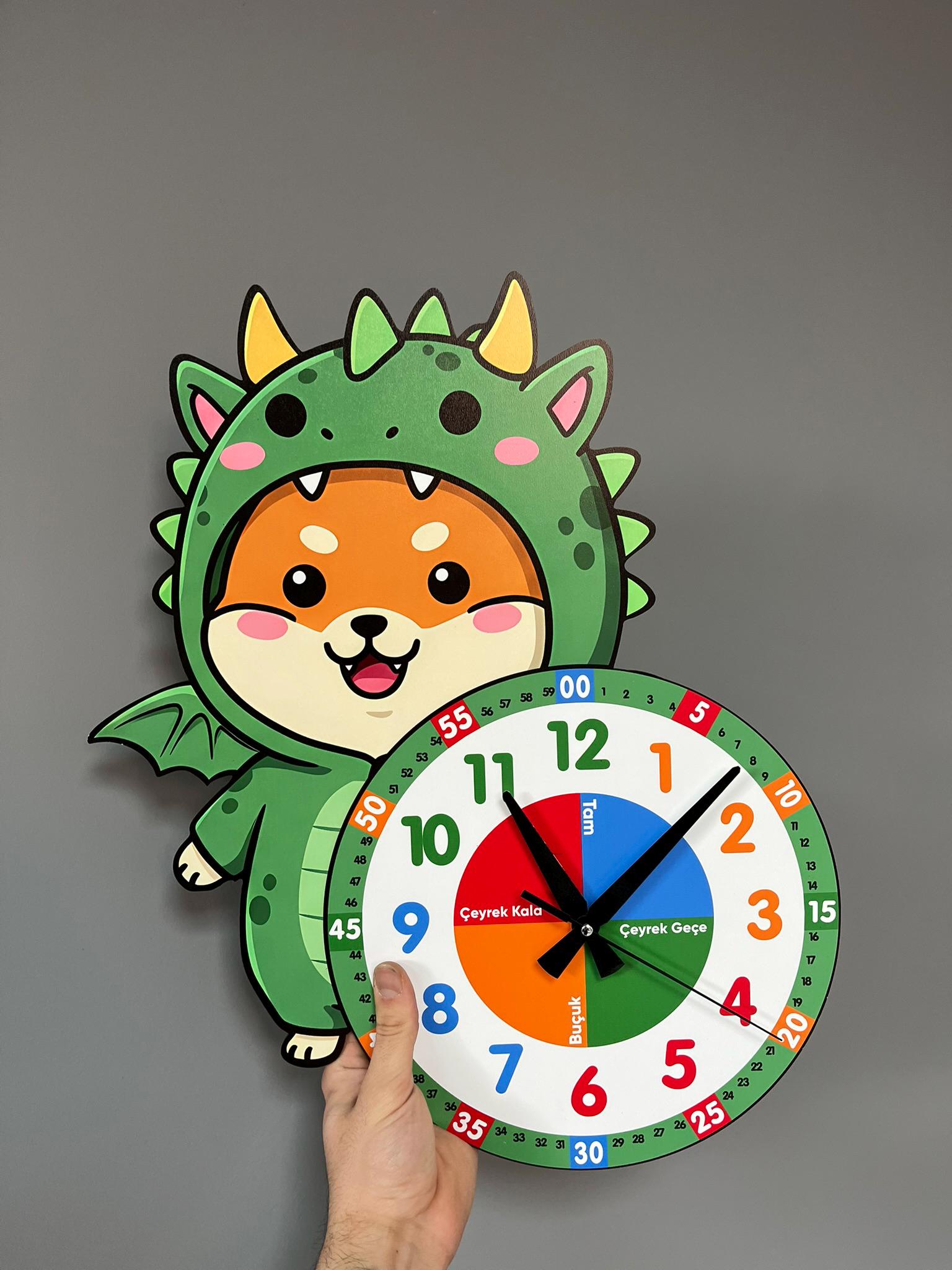 Cute Dragon Themed Montessori Children's Room Educational Wall Clock