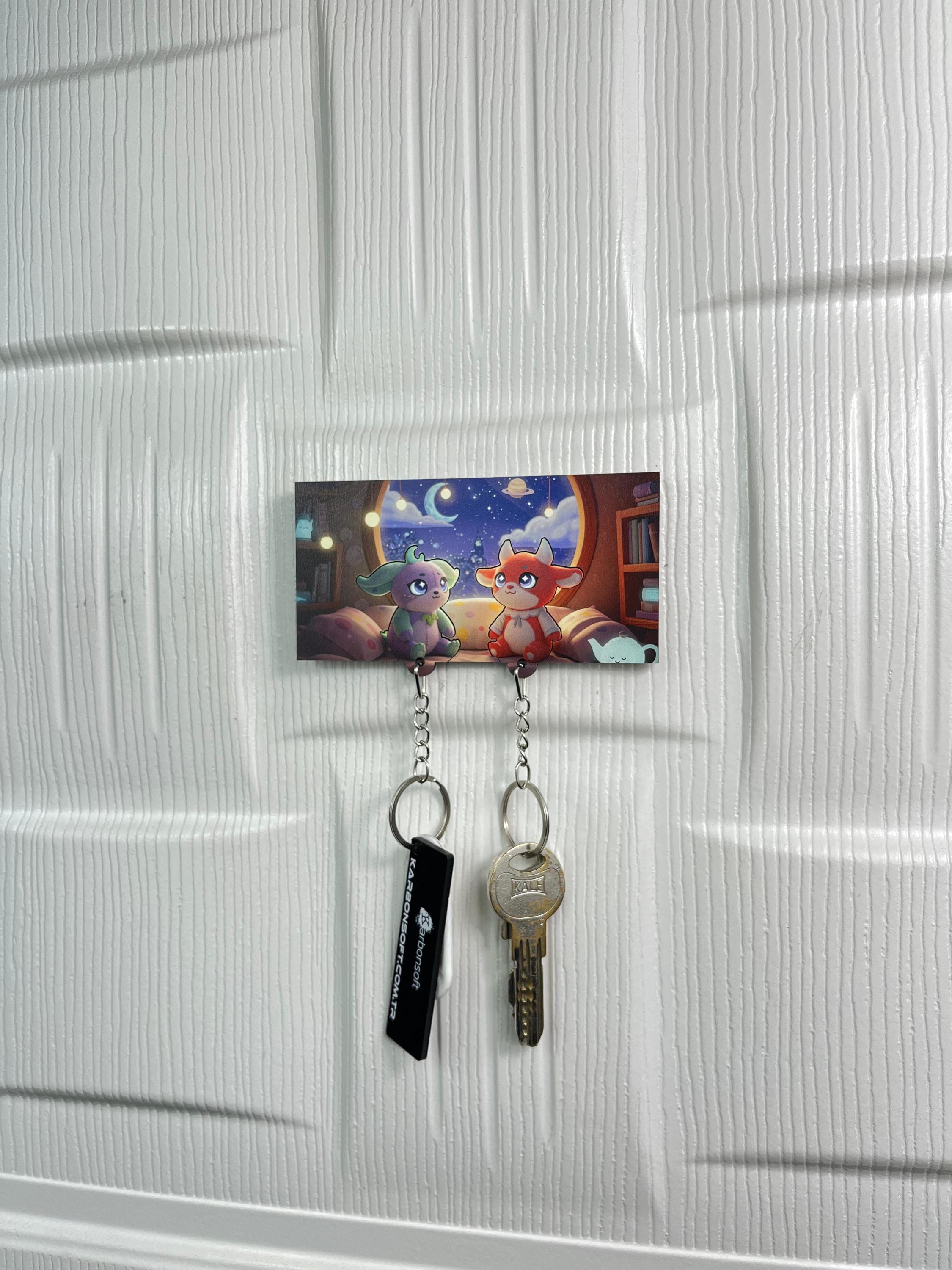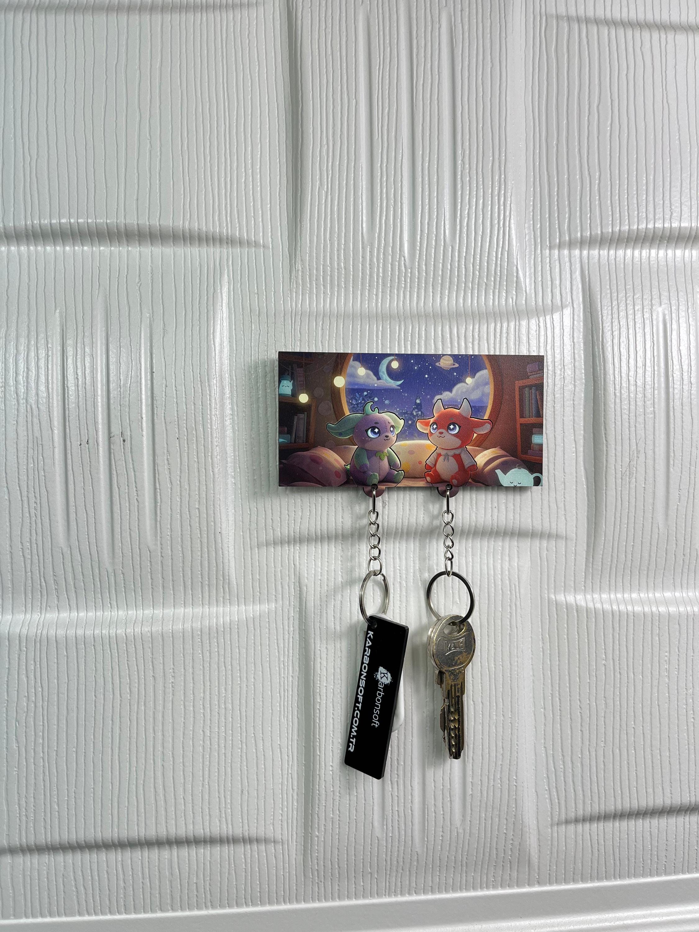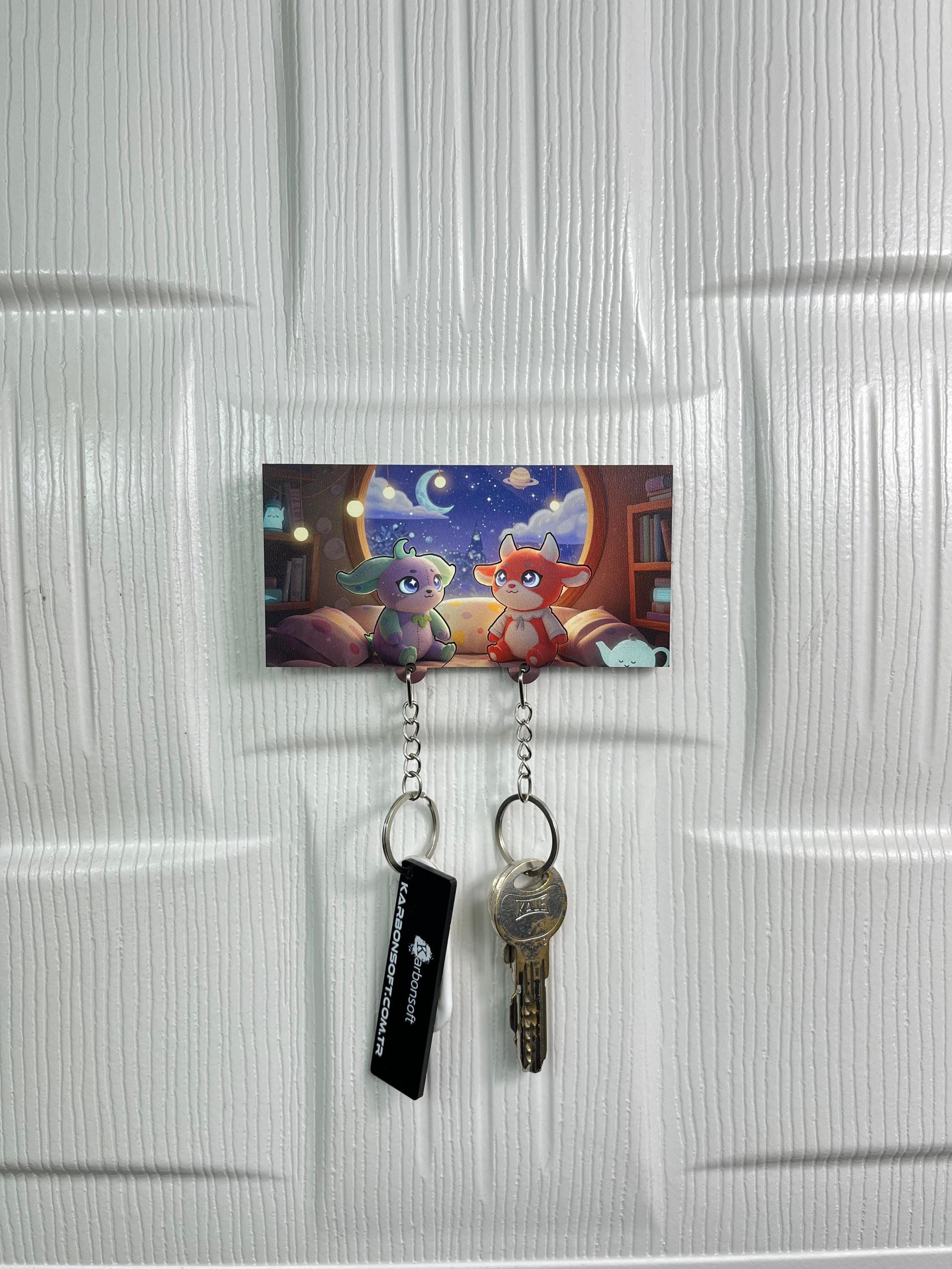 Bring a dreamy touch to your walls with this delightful wooden key holder featuring two magical creatures enjoying a moonlit night by the window. ๐พ๐