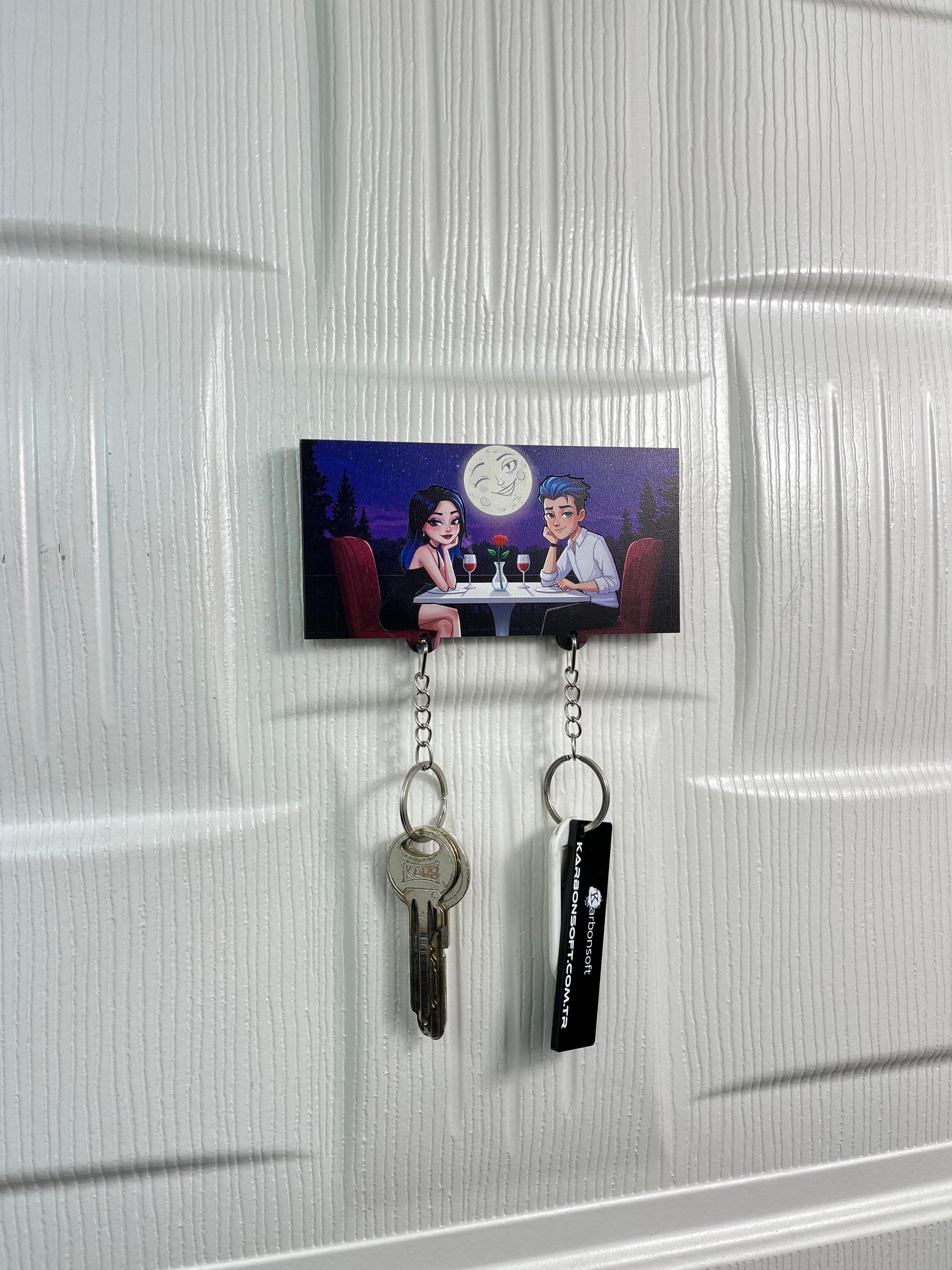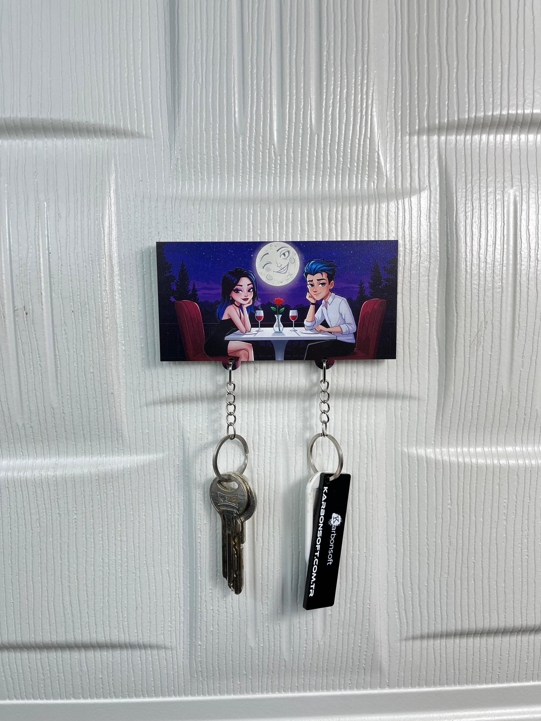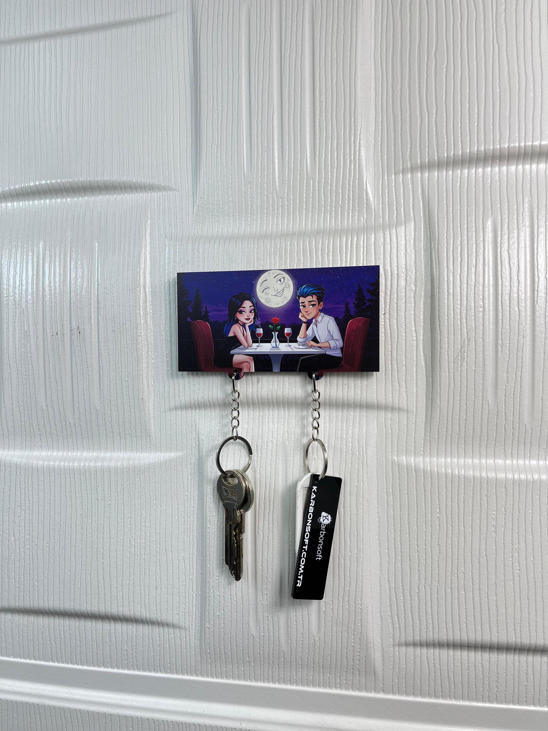 A quiet dinner, glowing eyes, and the moon smiling in the background 🌕✨ This Moonlit Date Wooden Key Holder features a romantic couple enjoying a candlelit dinner under the full moon. Handmade and full of charm, it's a perfect piece for lovebirds and cozy home vibes.