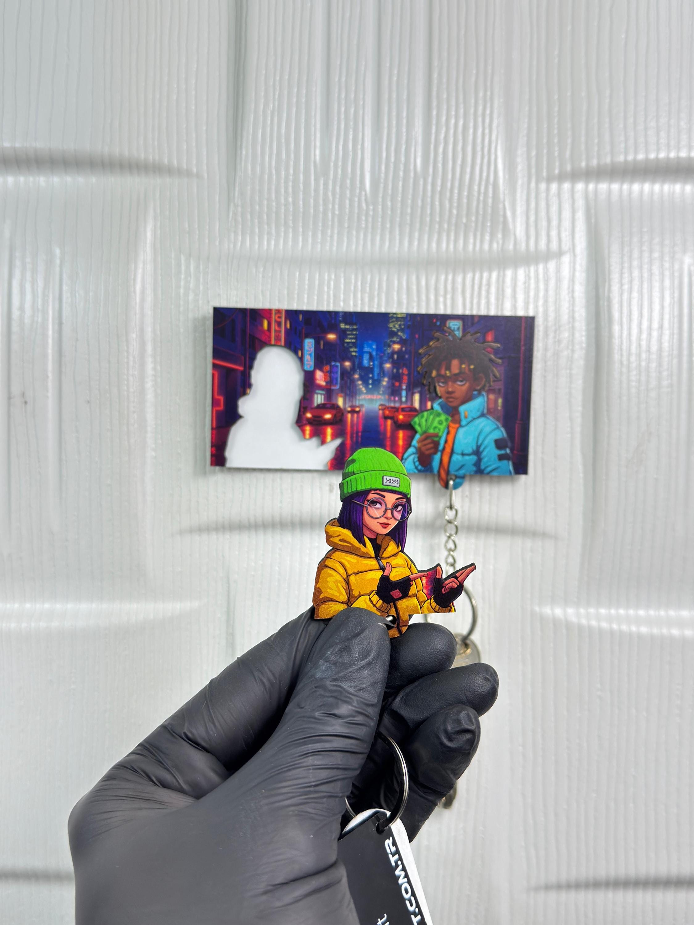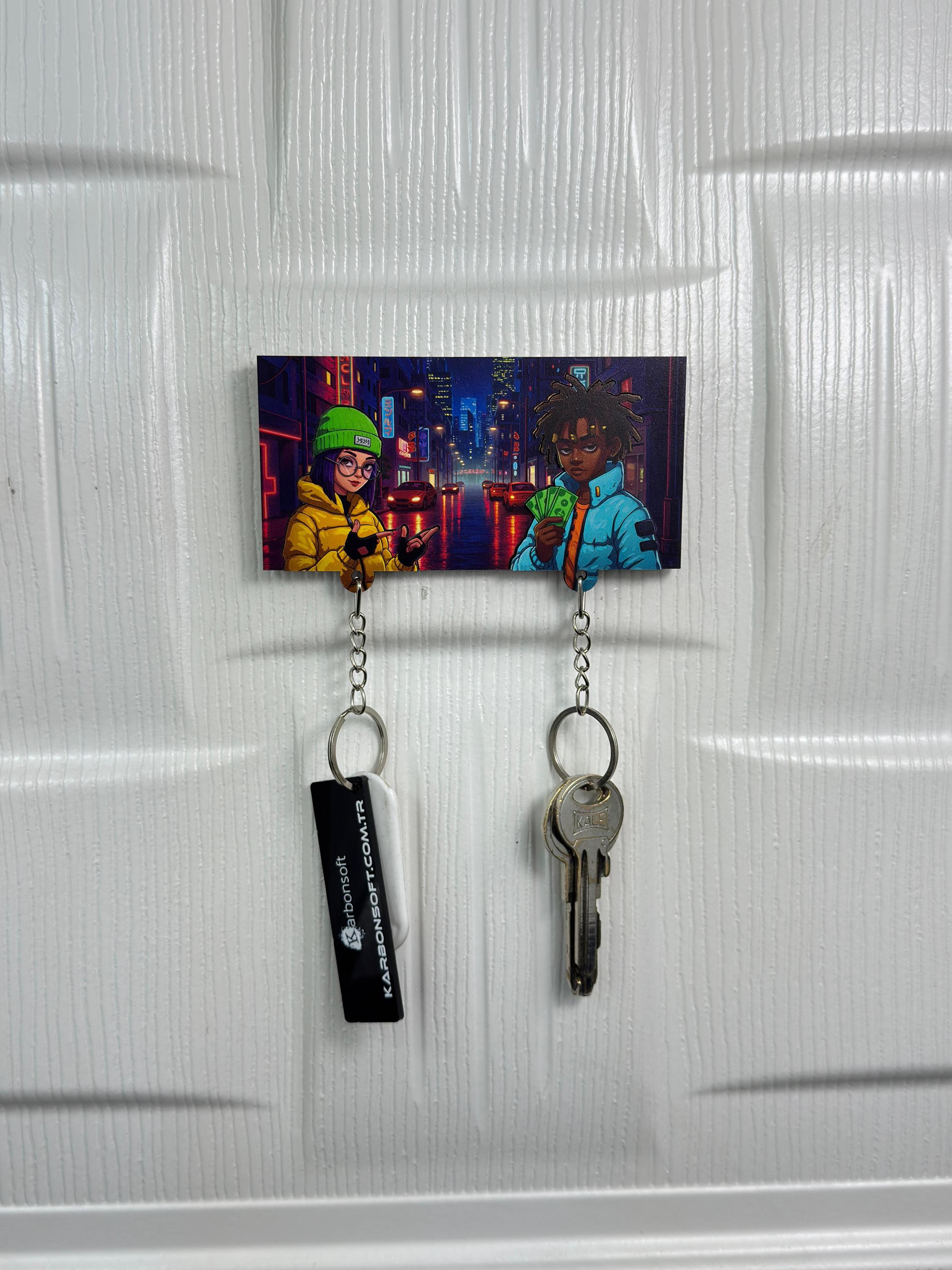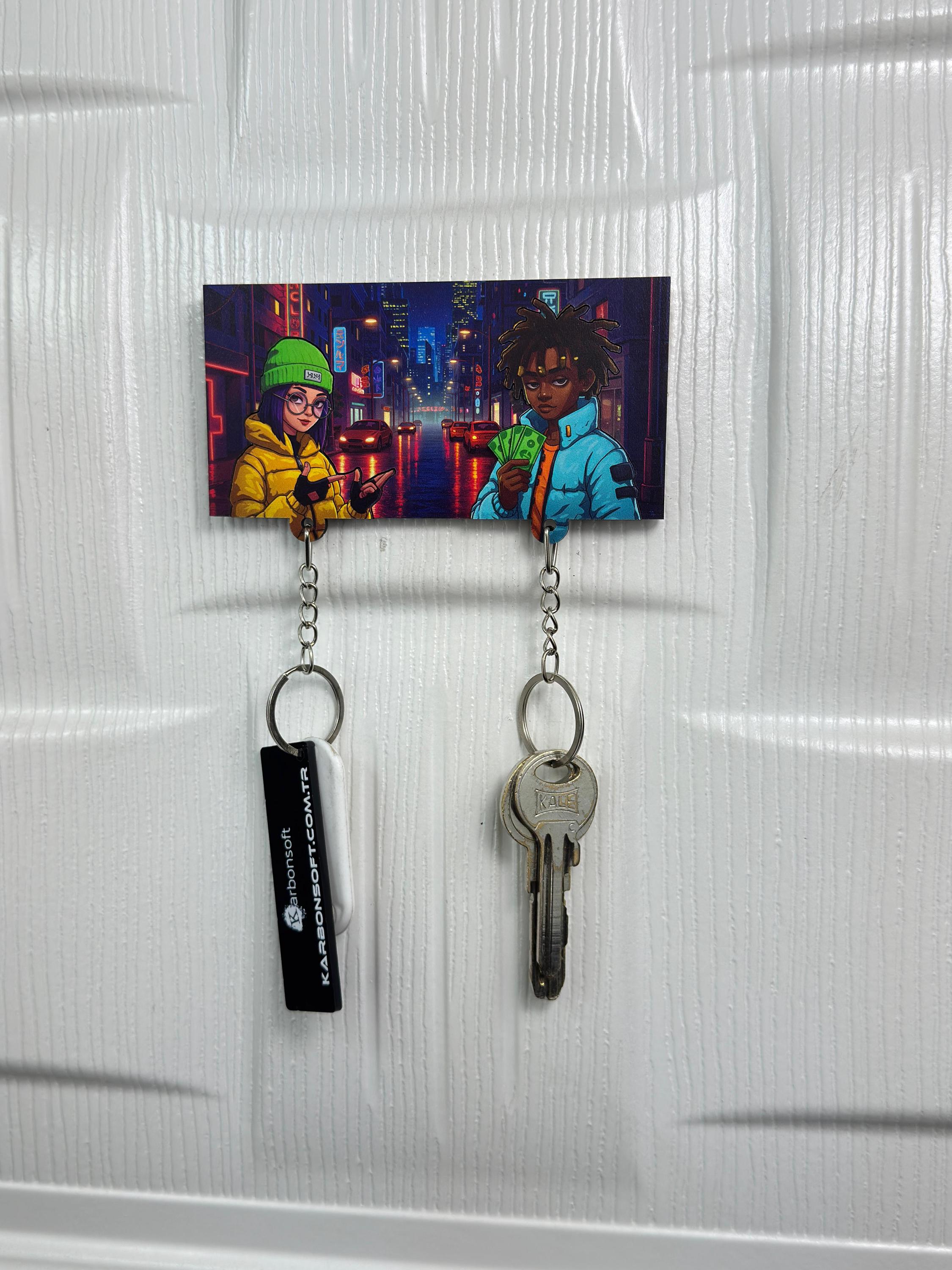 Bring a bold urban vibe into your space with this Urban Street Couple Wooden Key Holder 🔥 Set in a neon-lit city night, this vibrant key rack features two cool, stylish characters that radiate attitude, style, and creativity.