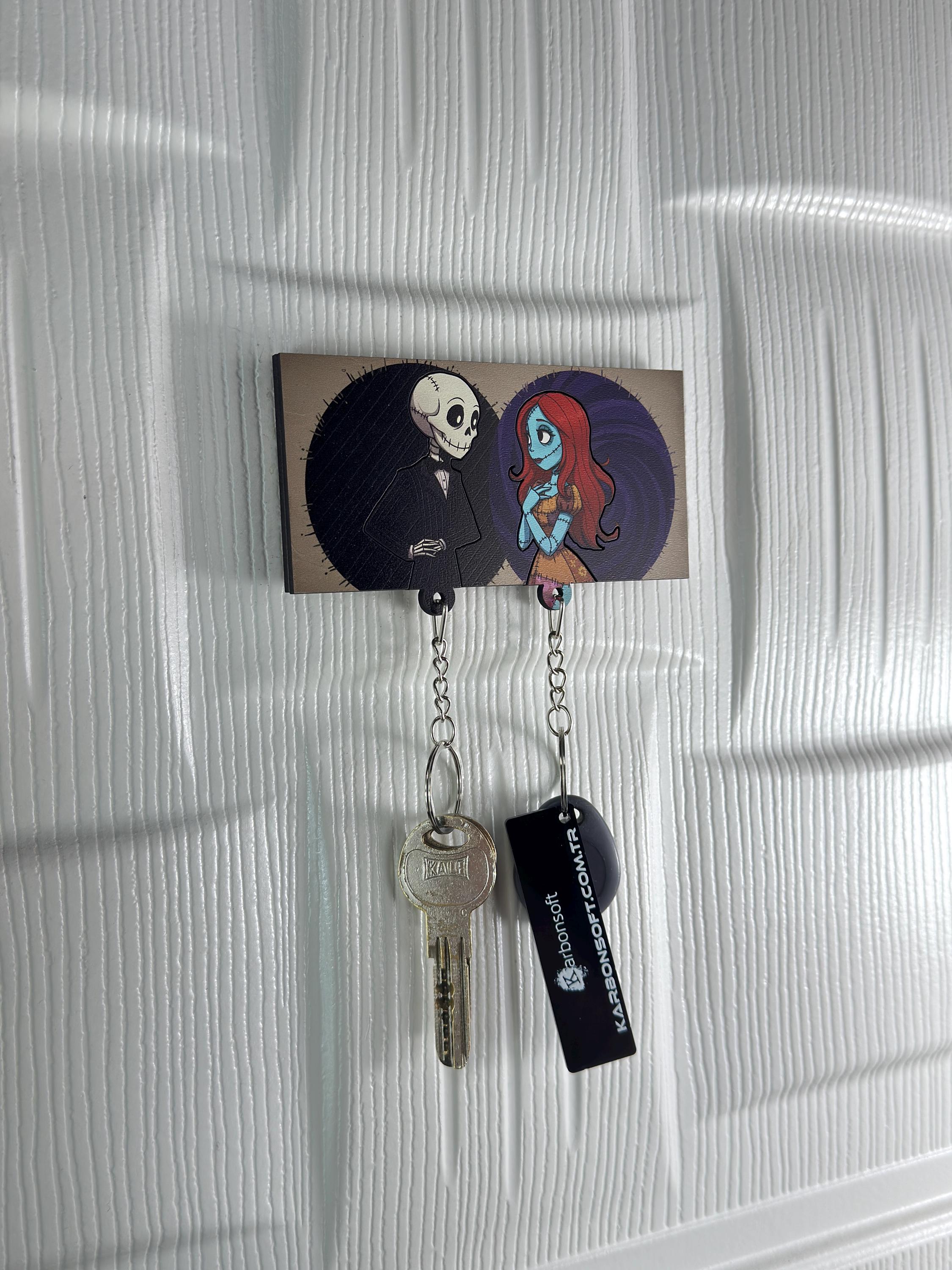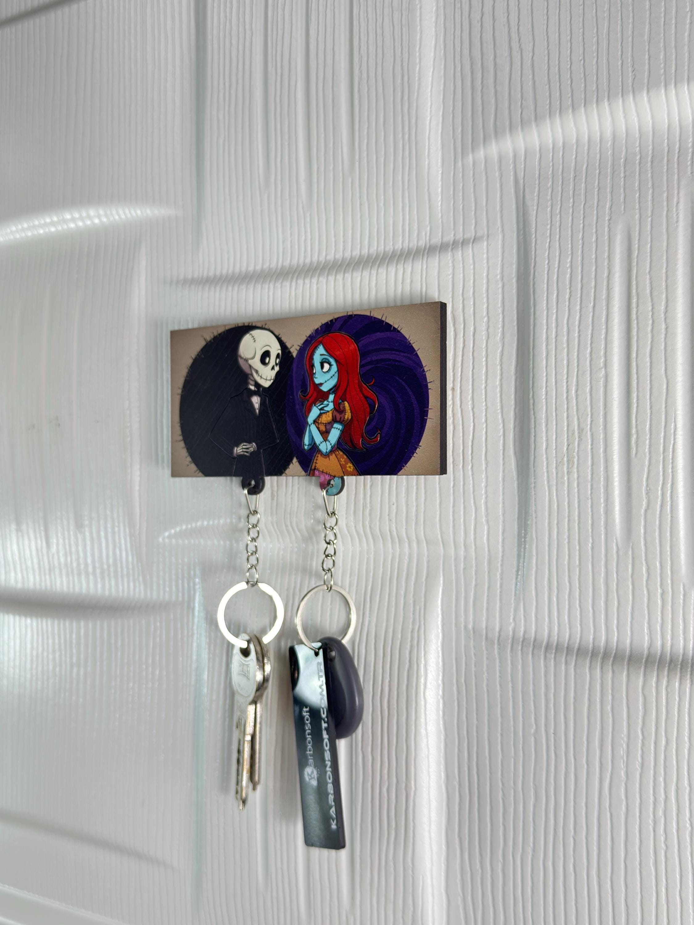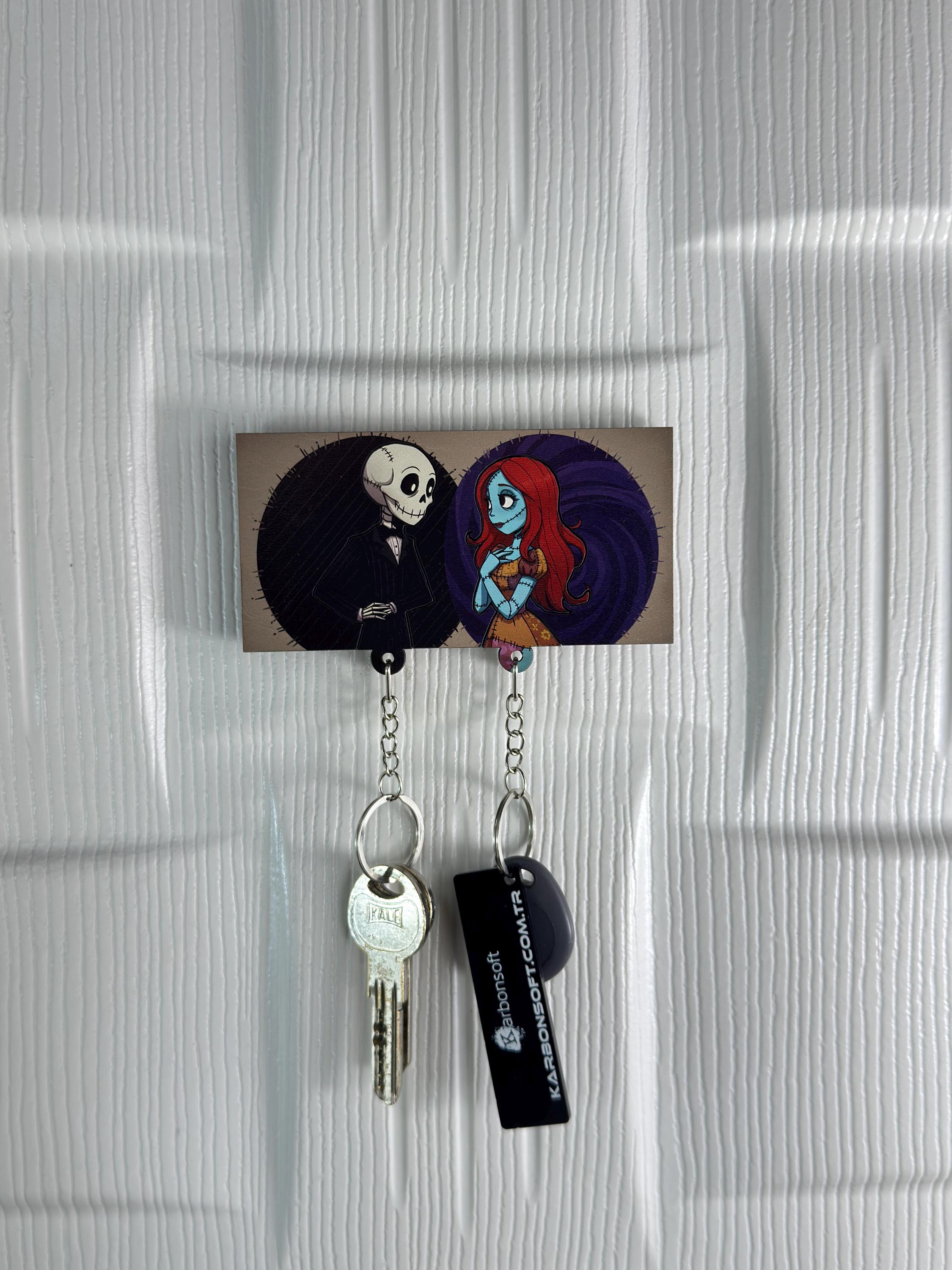 Looking for something adorably eerie to hang your keys on? 🦇🔑 This Gothic Couple Wooden Key Holder is the perfect mix of spooky and sweet — featuring a charmingly quirky skeleton guy and his blue-toned sweetheart, locked in eternal love.