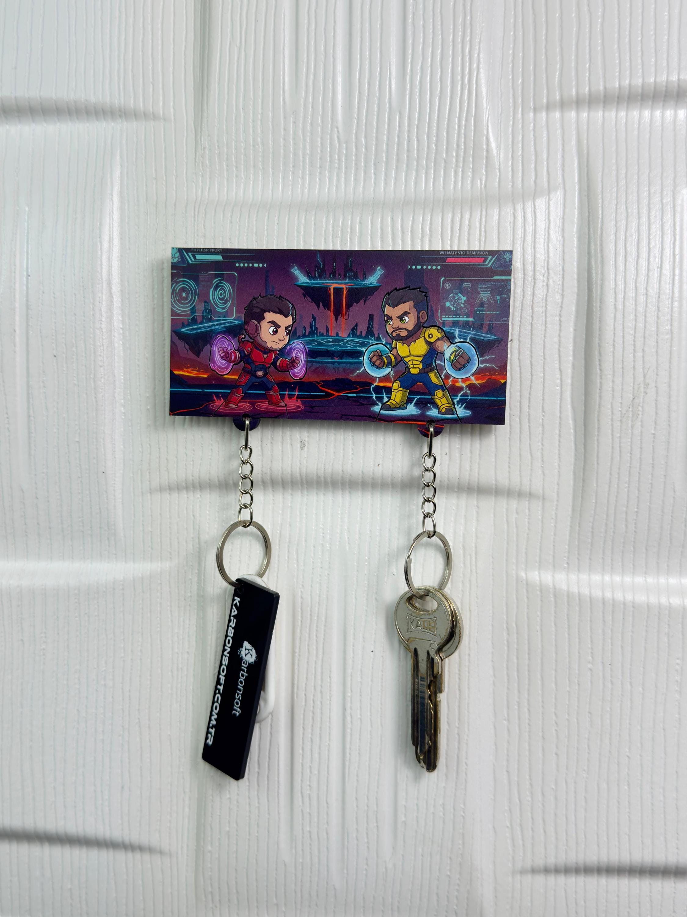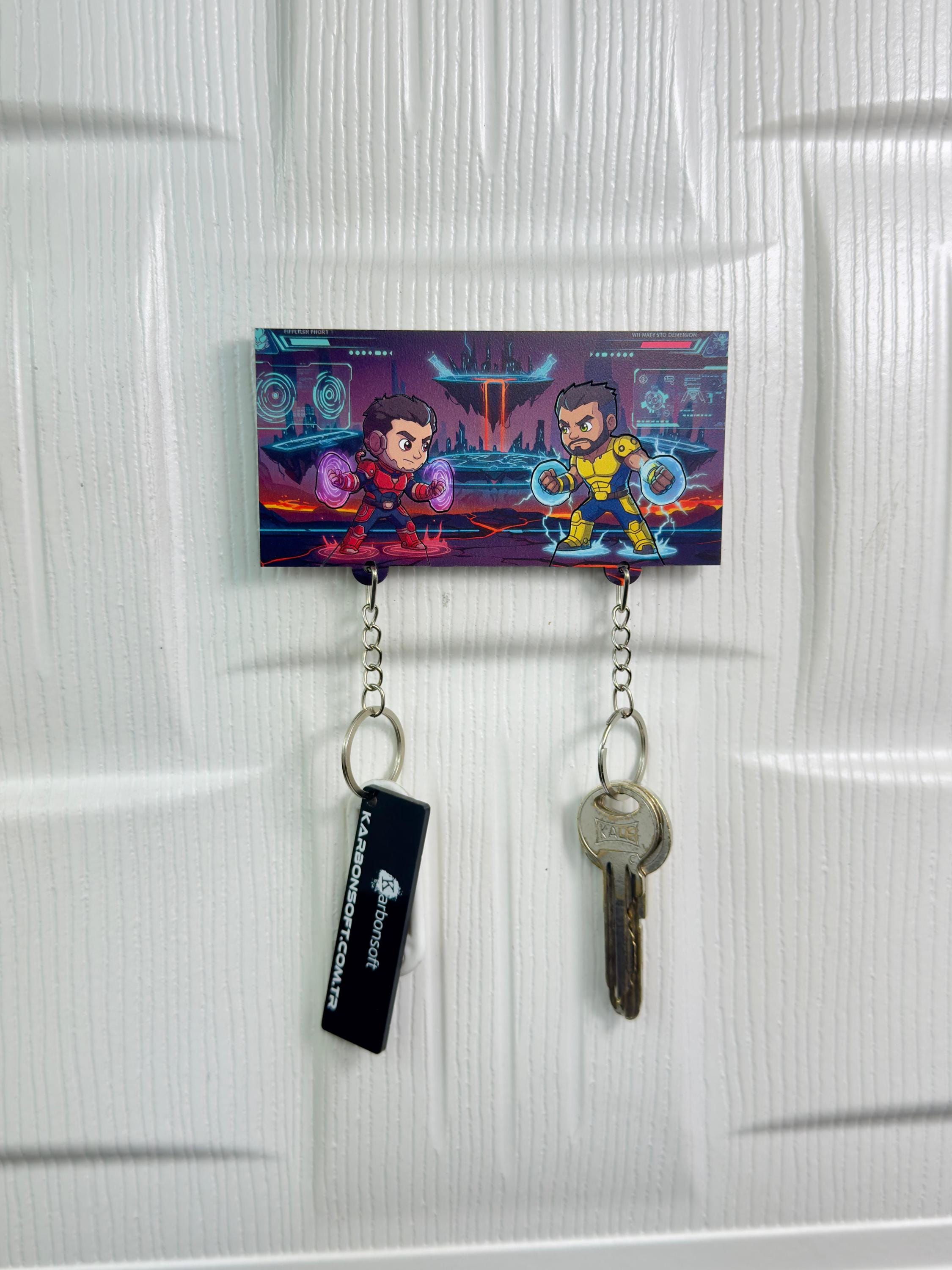 Let the pixel-powered showdown begin! 🎮⚡ This Pixel Battle Wooden Key Holder showcases two heroic rivals locked in an epic arena-style standoff. Designed in a retro pixel-art style, it’s perfect for gaming fans, geeky decor lovers, or anyone who enjoys bold and fun accessories.