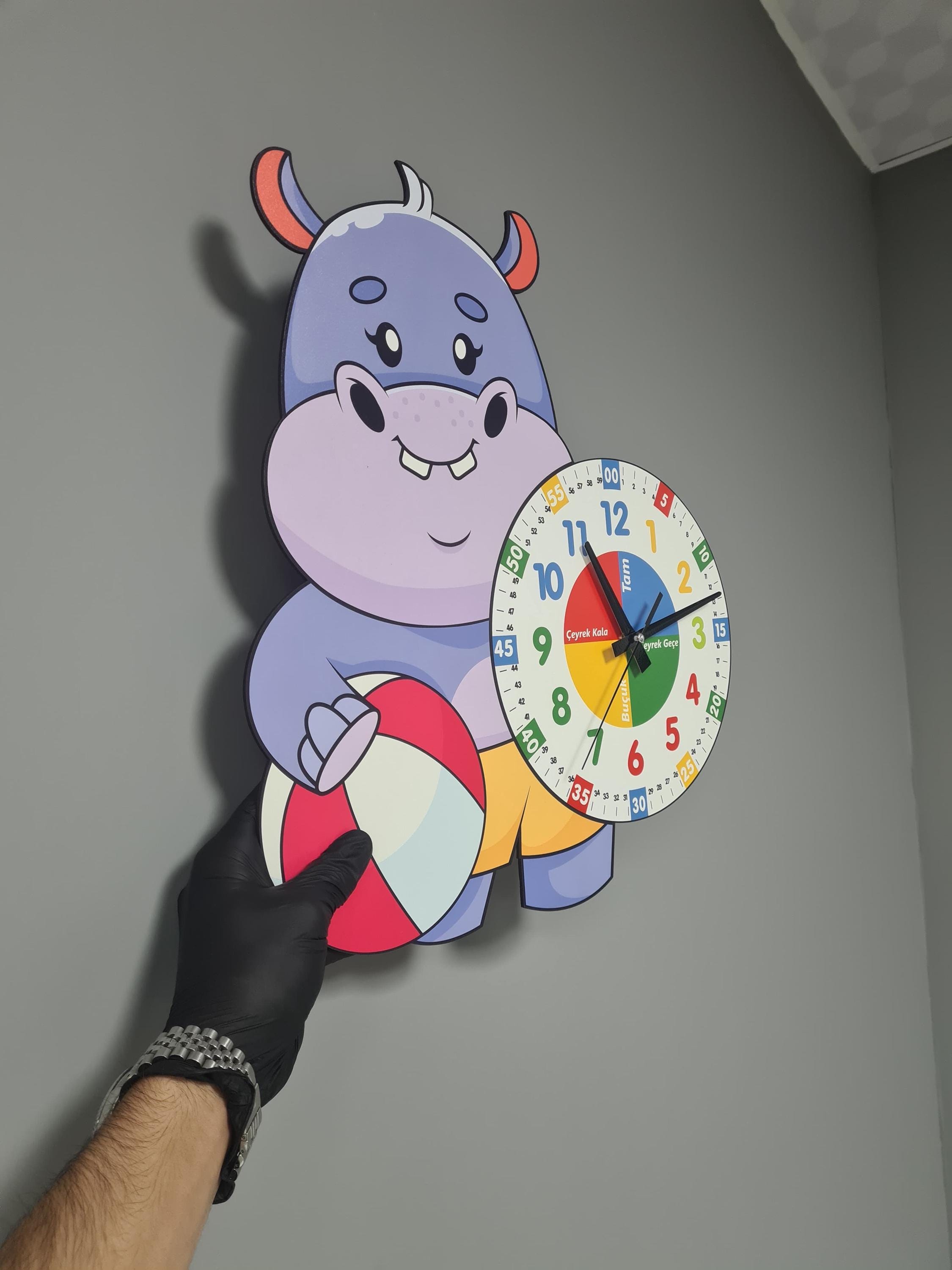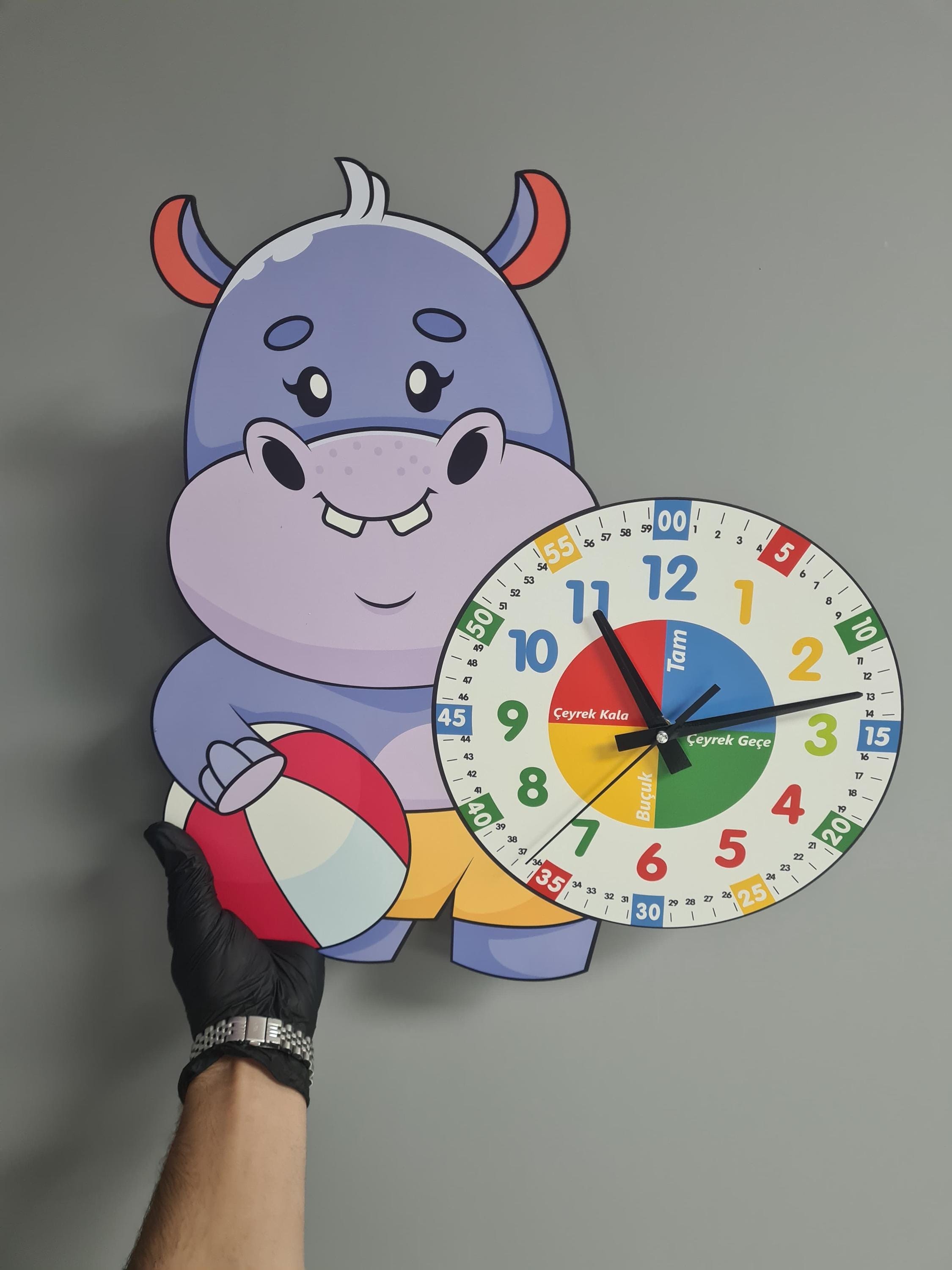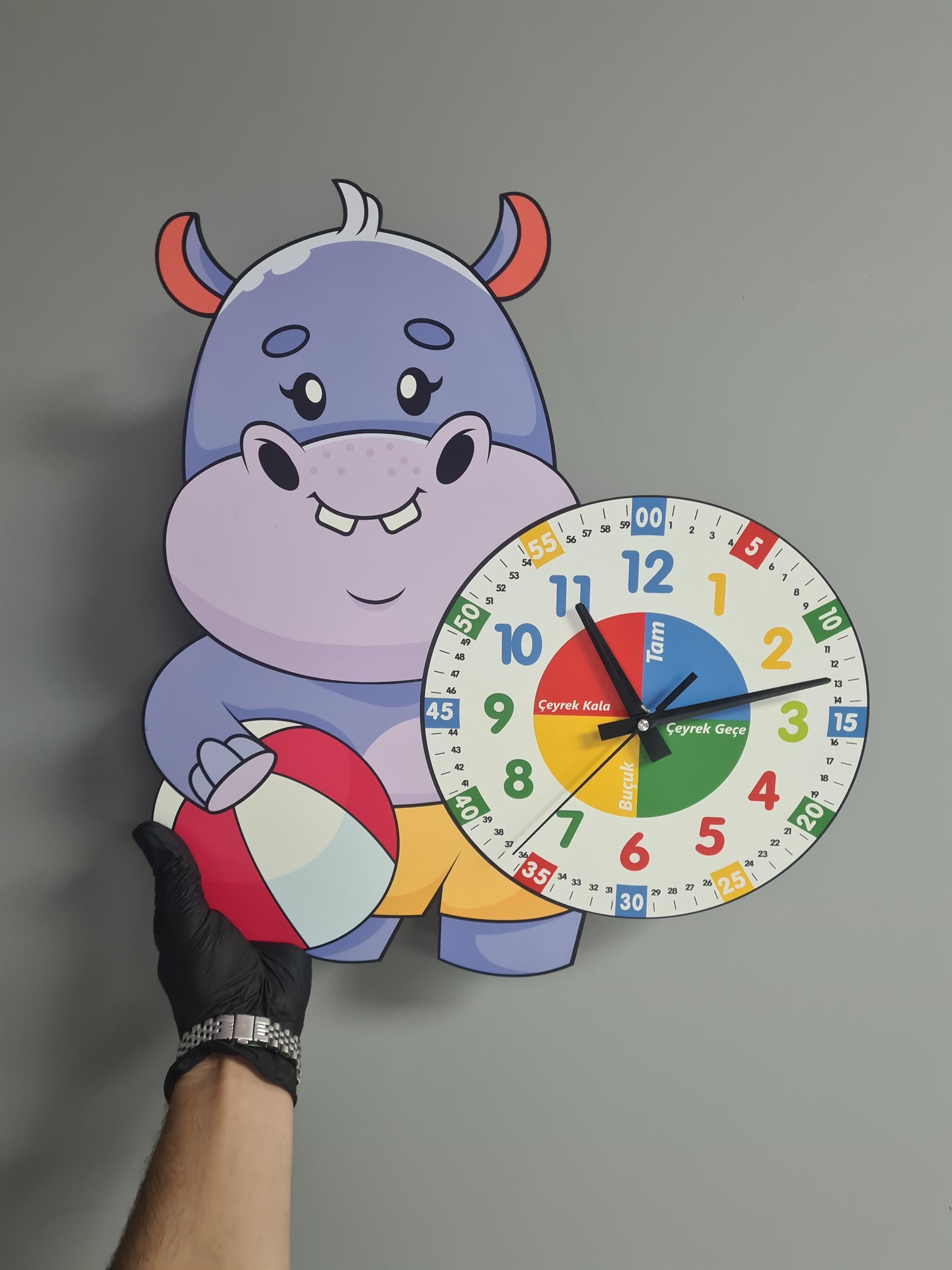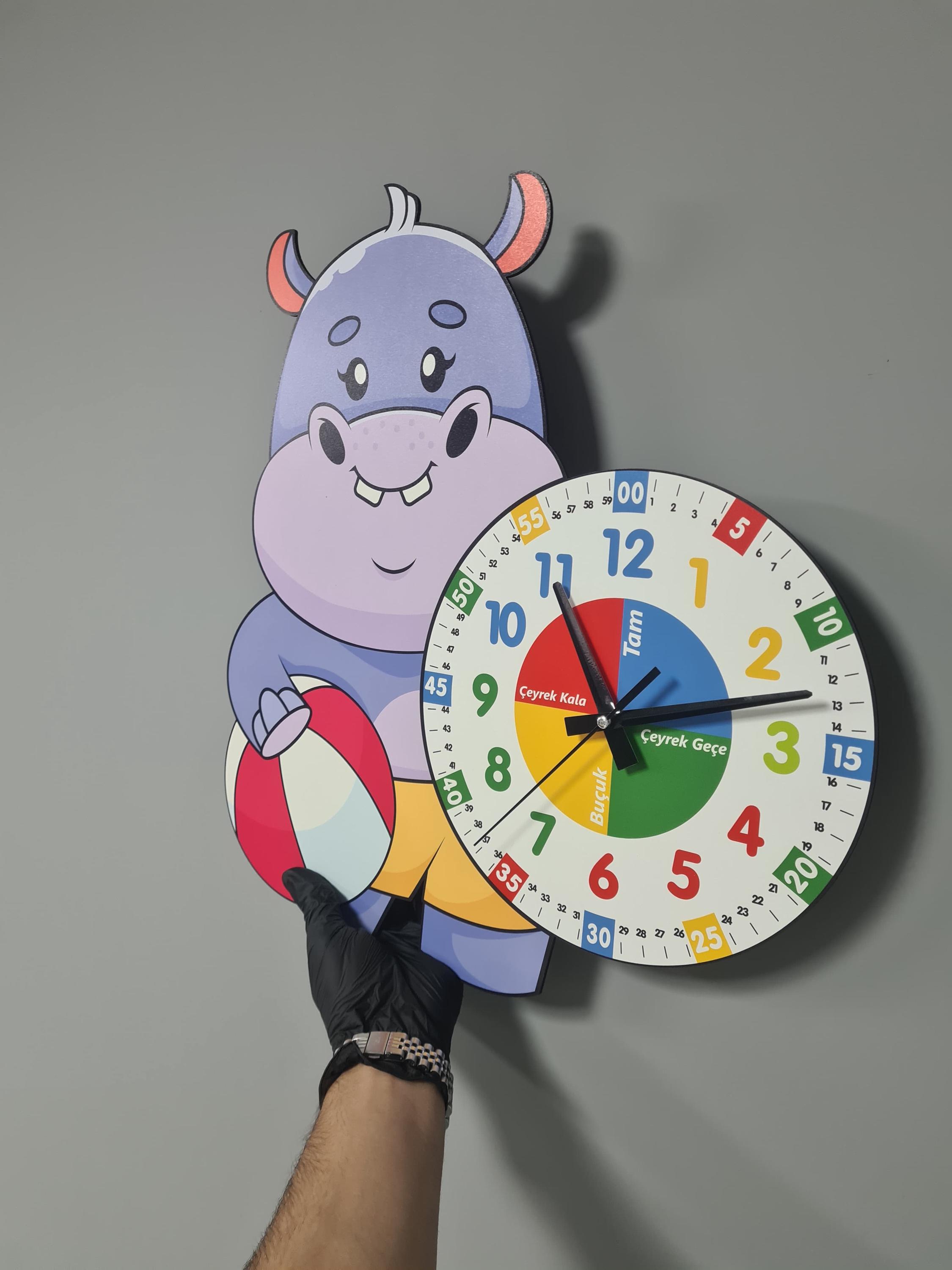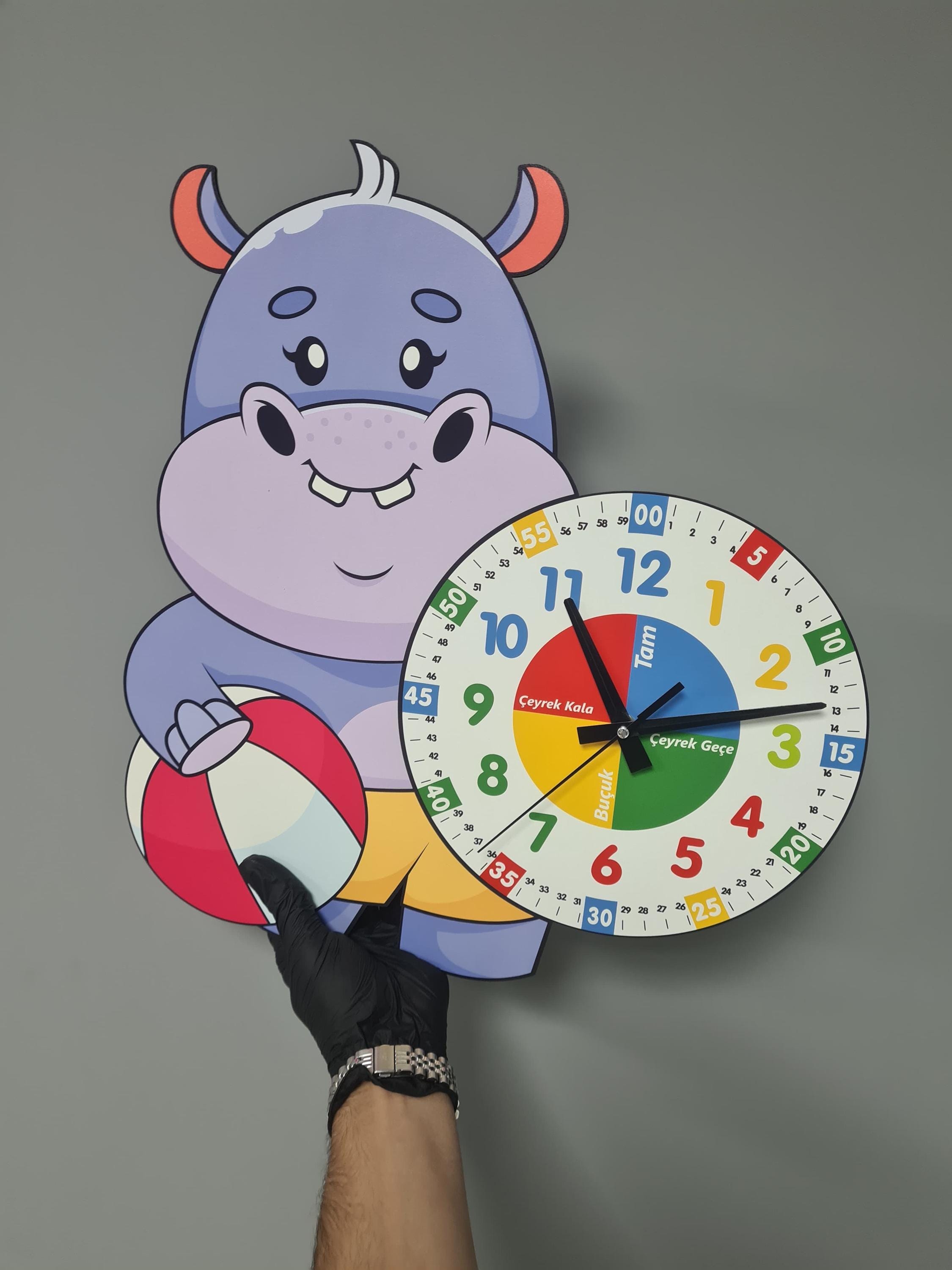 The lively hippo, holding a cheerful beach ball in its right hand and an educational clock in its left, helps little ones understand the value of time. This fun clock contributes to both visual and cognitive development, allowing children to enjoy playtime while learning about time.