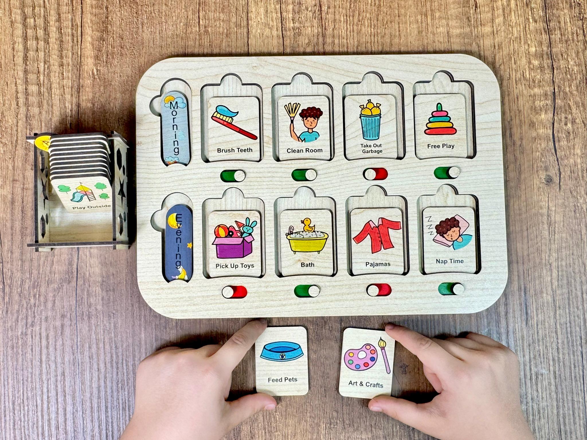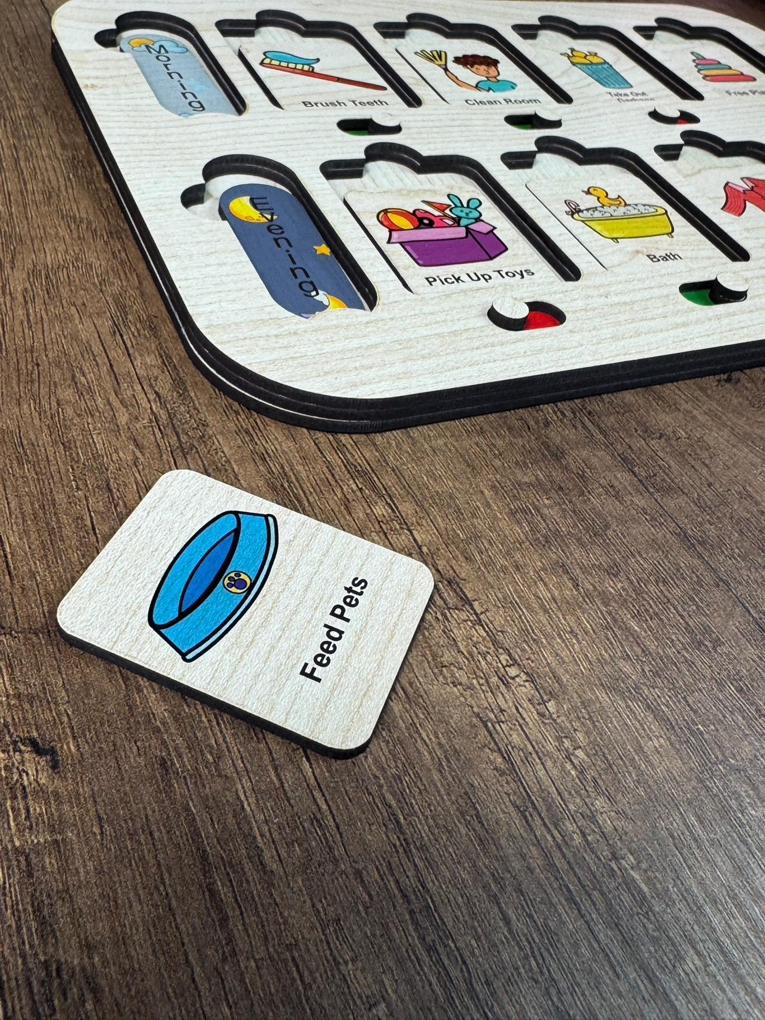 Help your child build healthy habits and stay organized with our Wooden Routine Chart for Kids! Designed to make daily routines fun and engaging, this interactive tracker encourages responsibility and independence through a swiping mechanism that makes task completion enjoyable.