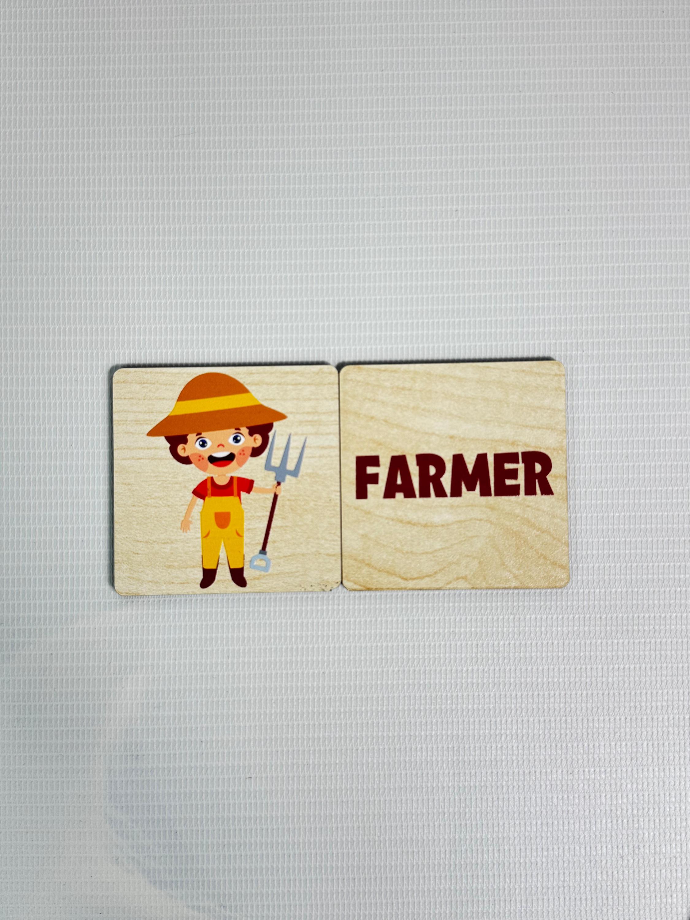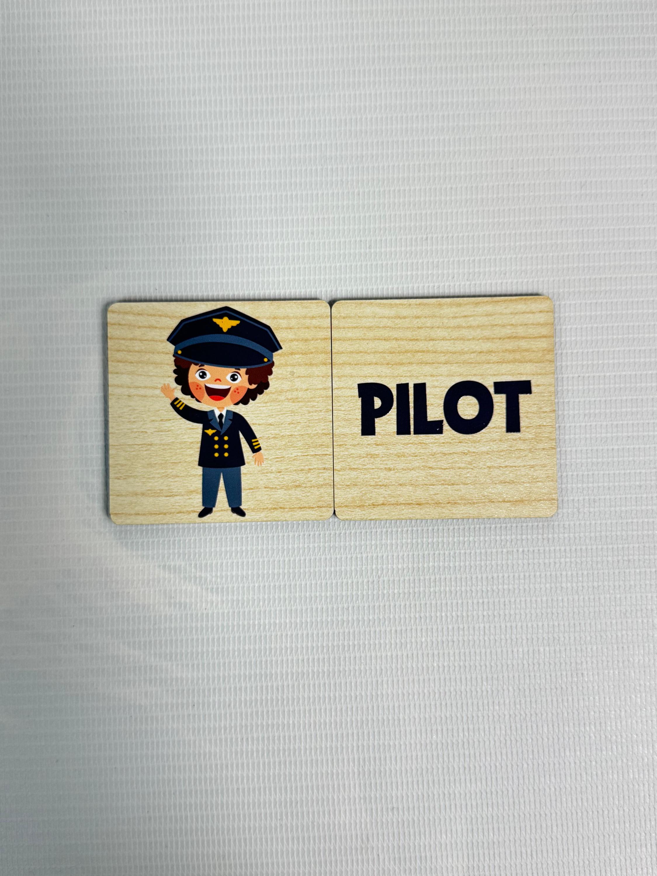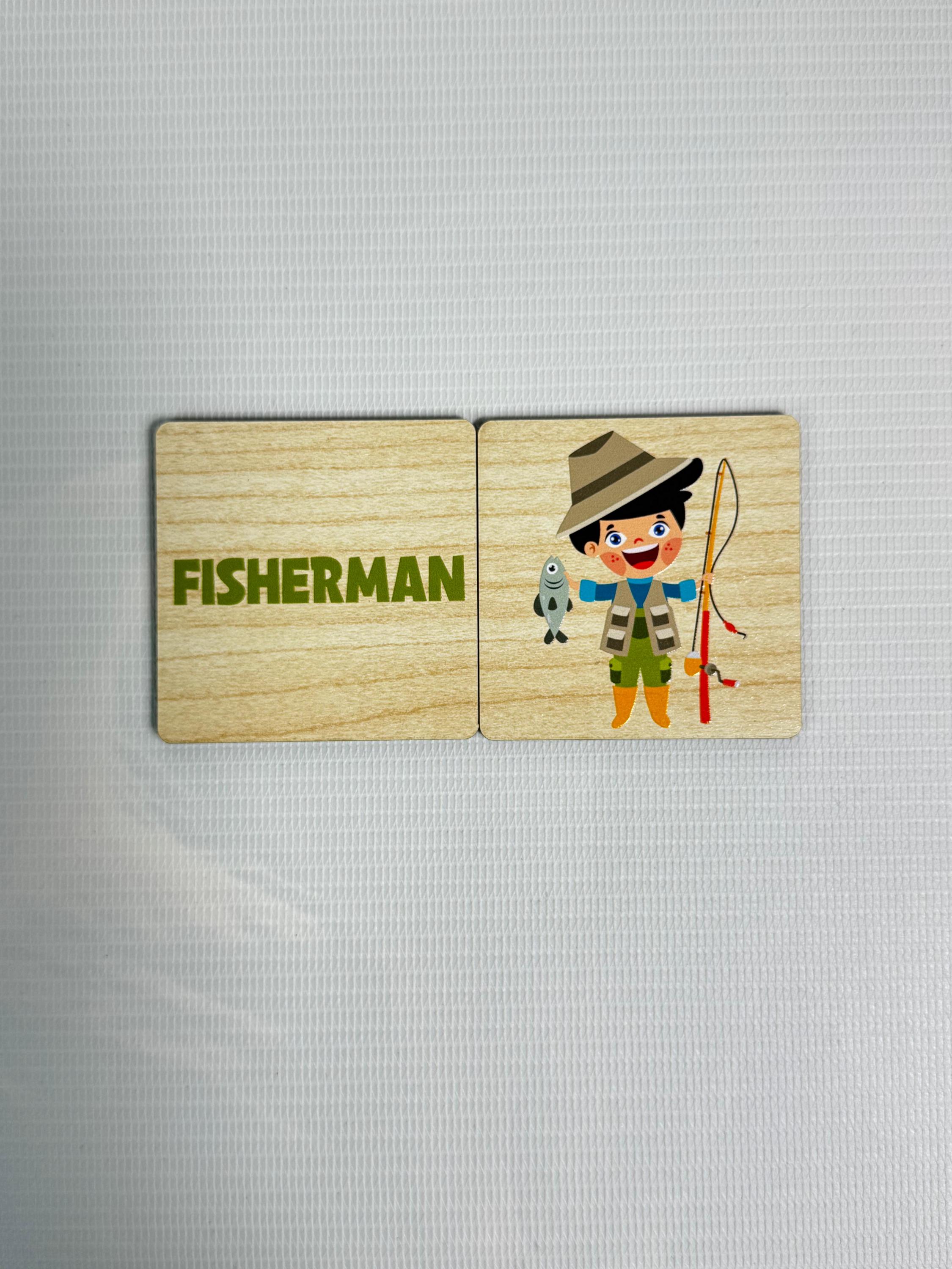 Introduce your children to the world of professions with this delightful Wooden Matching Card Game! Designed from durable and eco-friendly wooden material, this set includes 20 cards (2.4 in x 2.4 in) featuring 10 different professions: Scientist, Farmer, Reporter, DJ, Hostess, Fisherman, Pilot, Cashier, Repairman, and Anchorman.