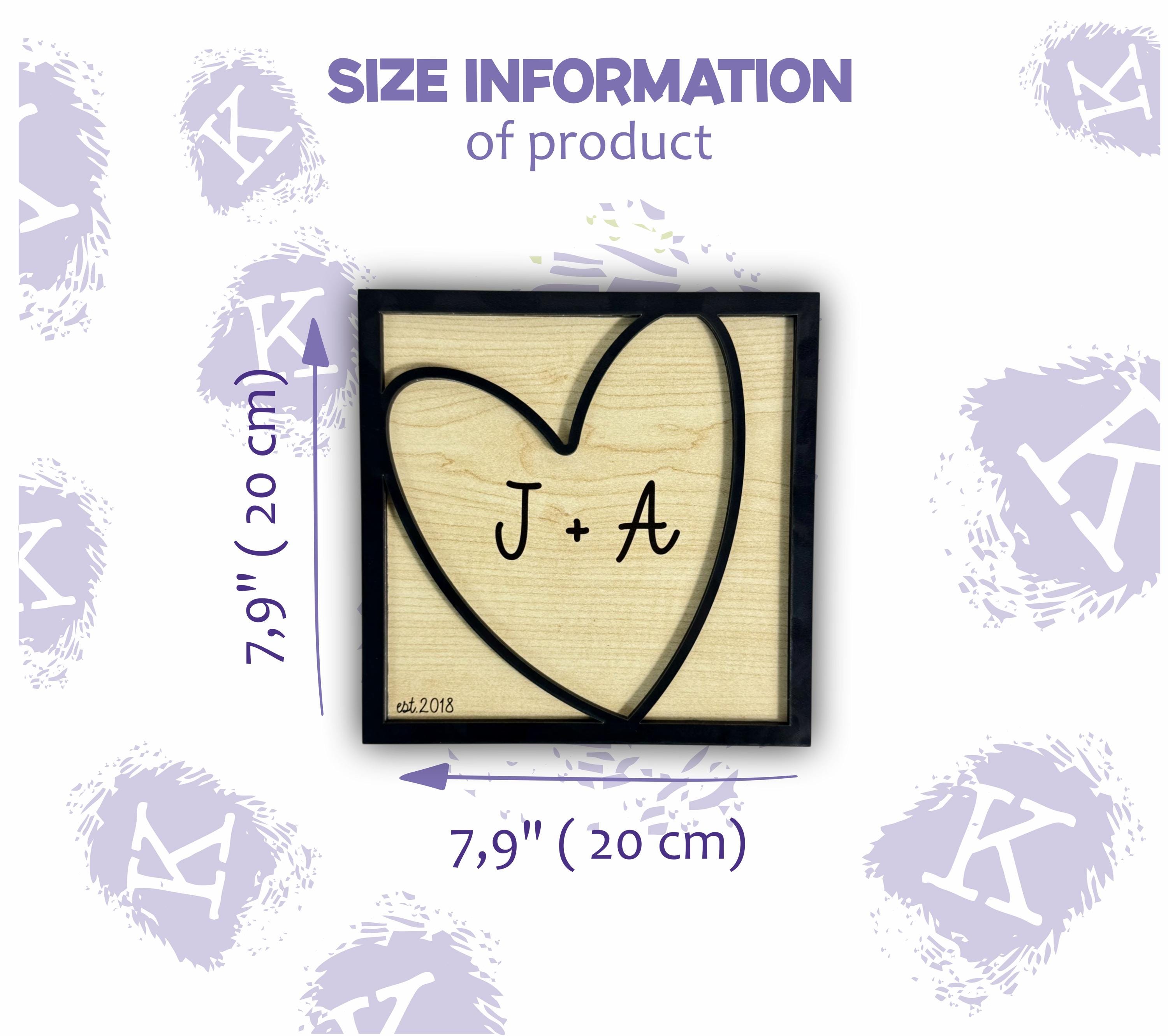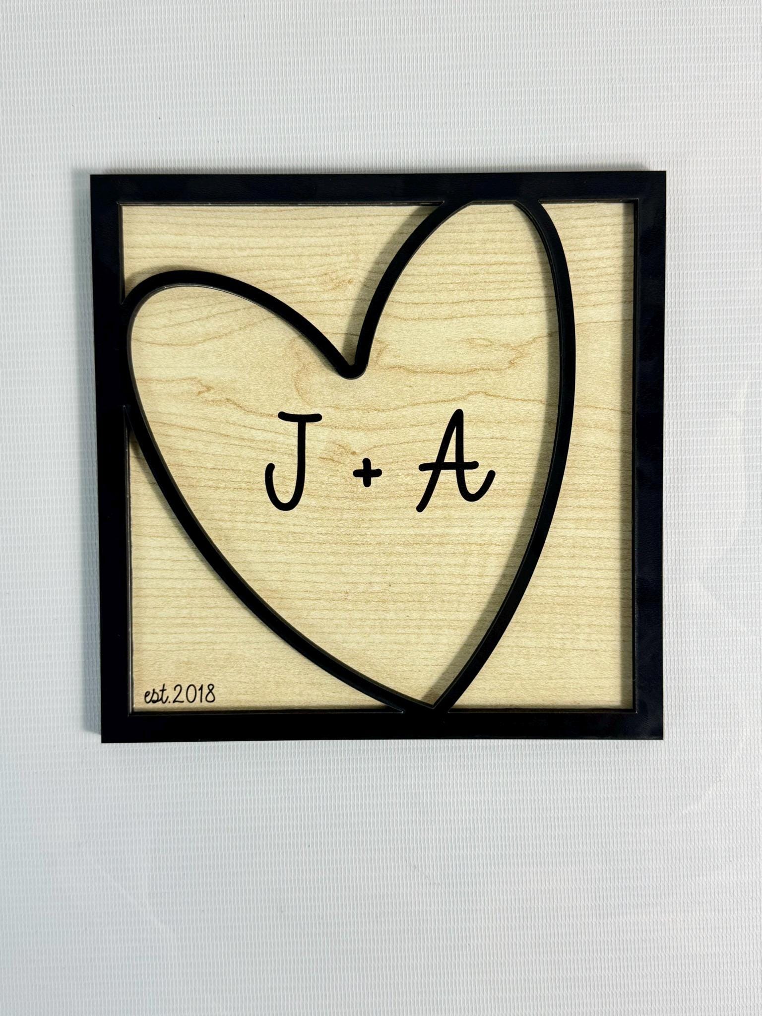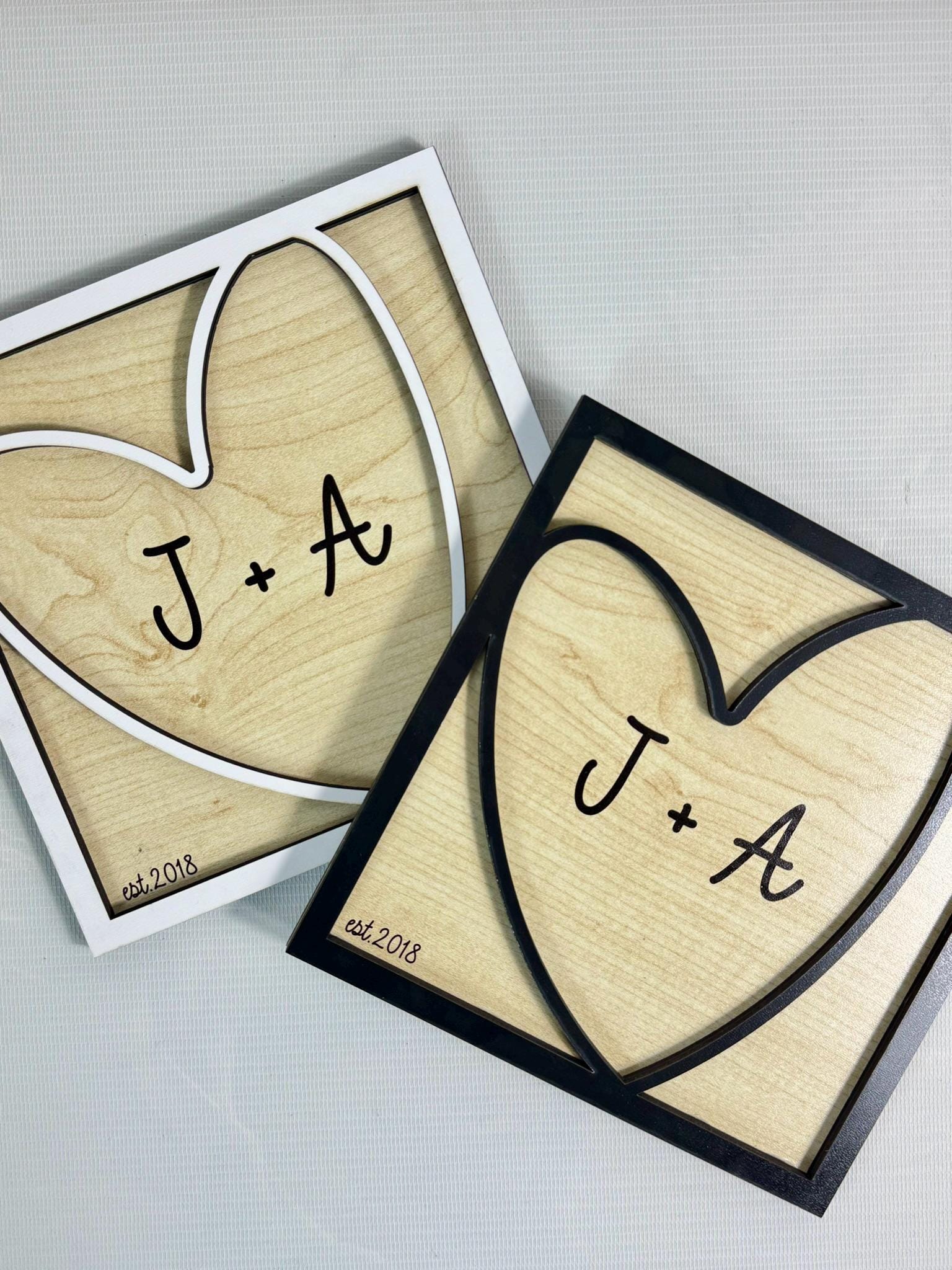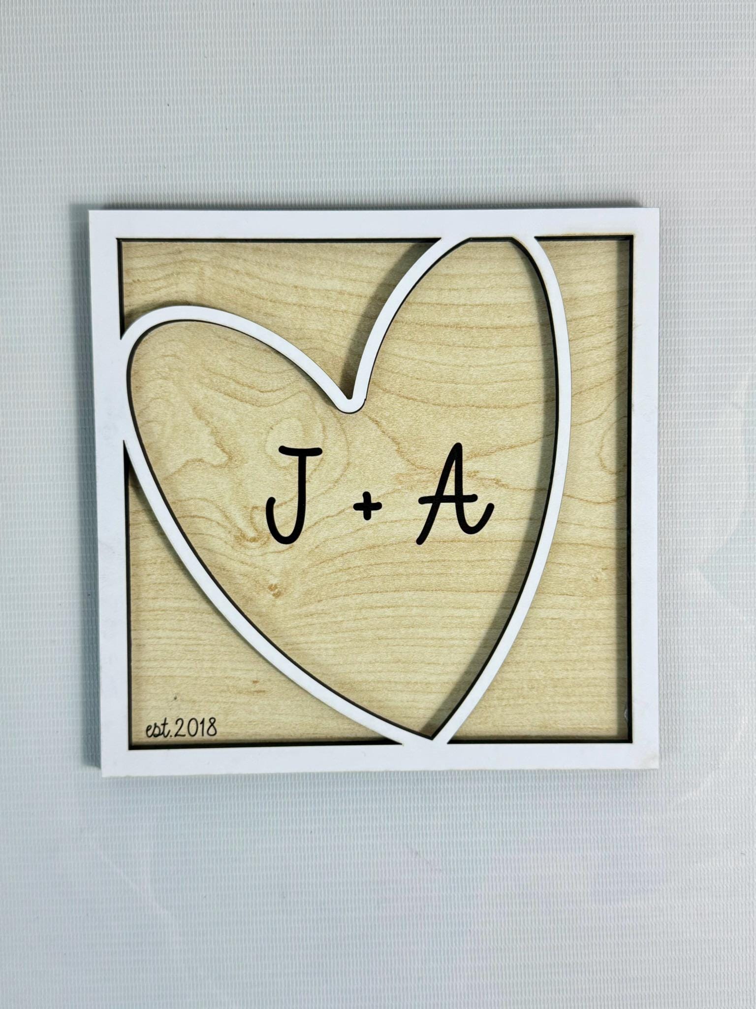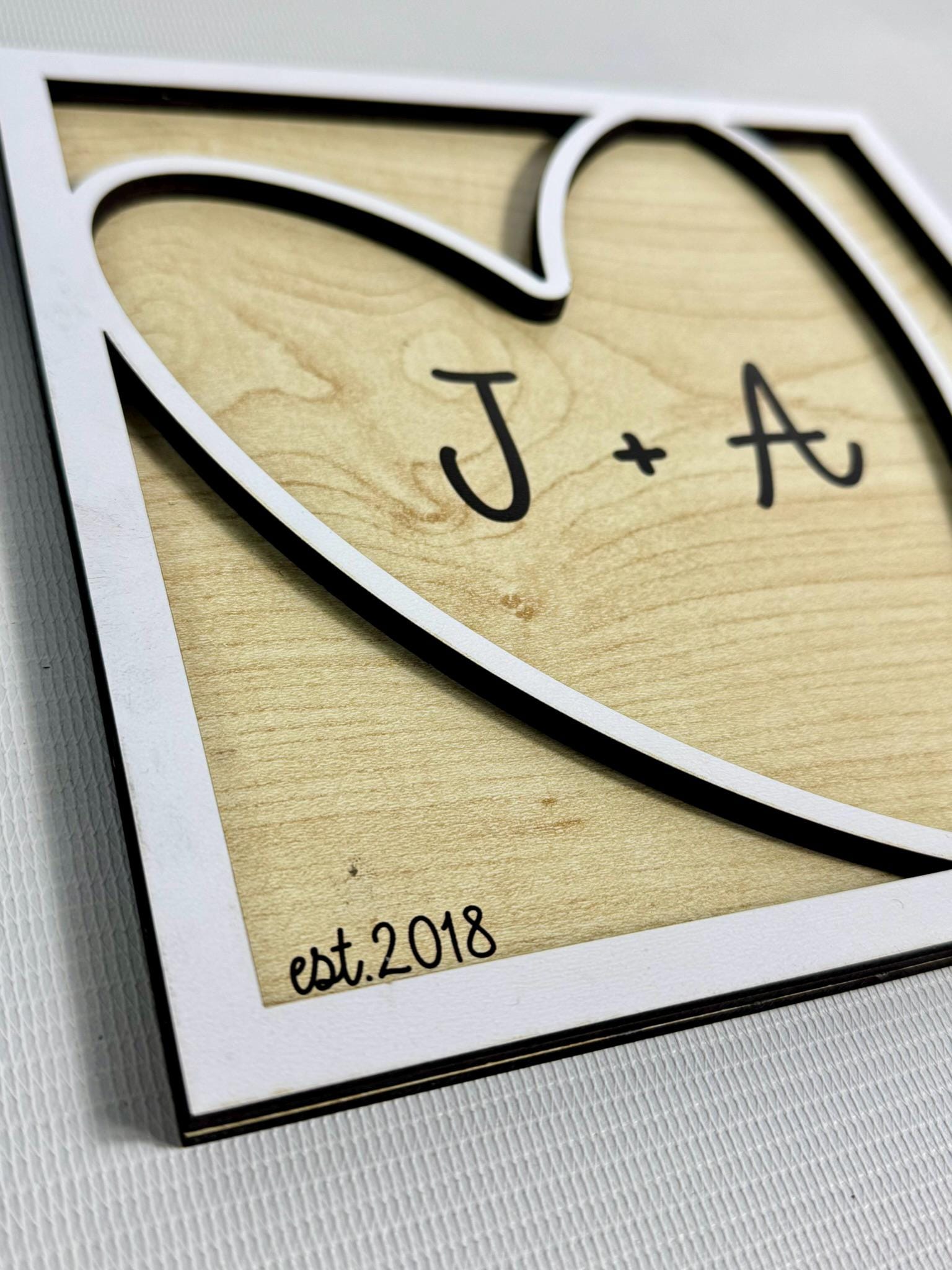 Celebrate love with this personalized dimensional heart sign, designed to capture your unique bond. Featuring custom initials and an "Est." year, this beautifully crafted piece makes the perfect Valentine’s Day, anniversary, or wedding gift.